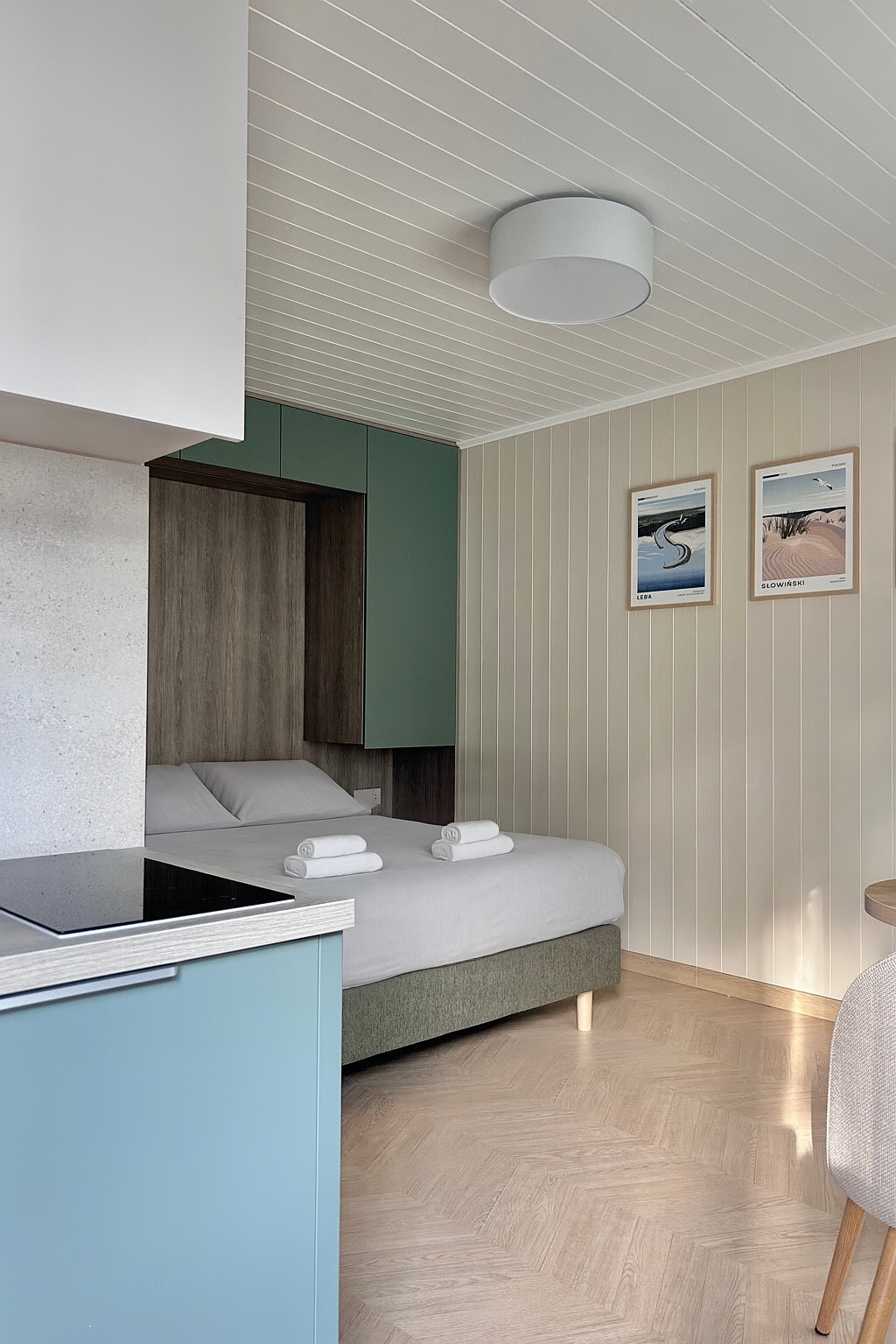 Domek ŁEB-01 to idealna propozycja dla par, które szukają ciszy, komfortu i nadmorskiego klimatu blisko morza.