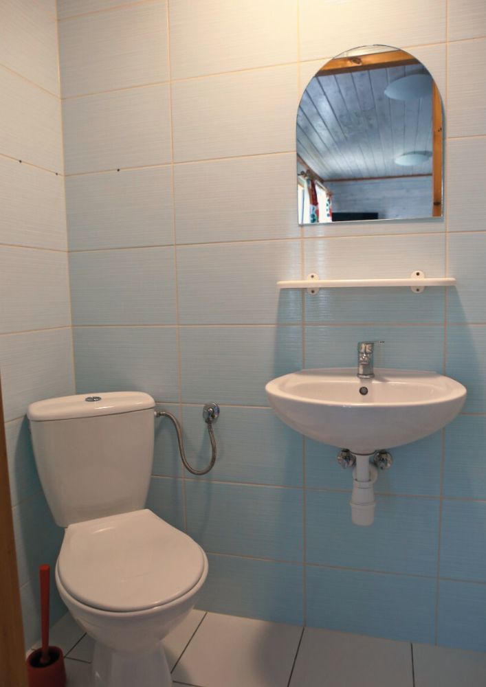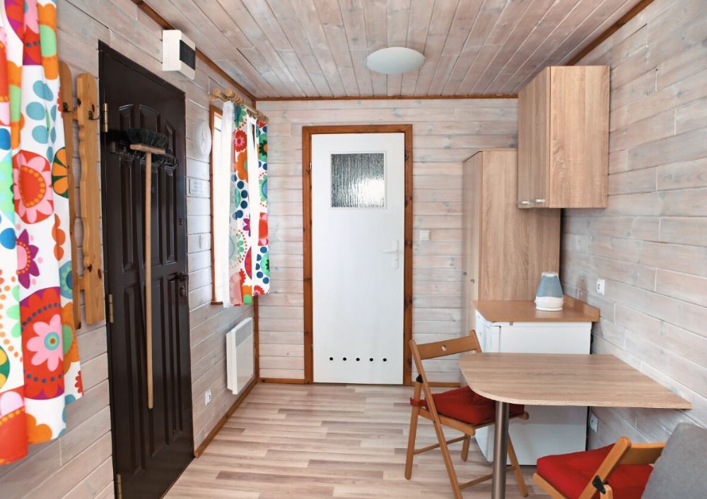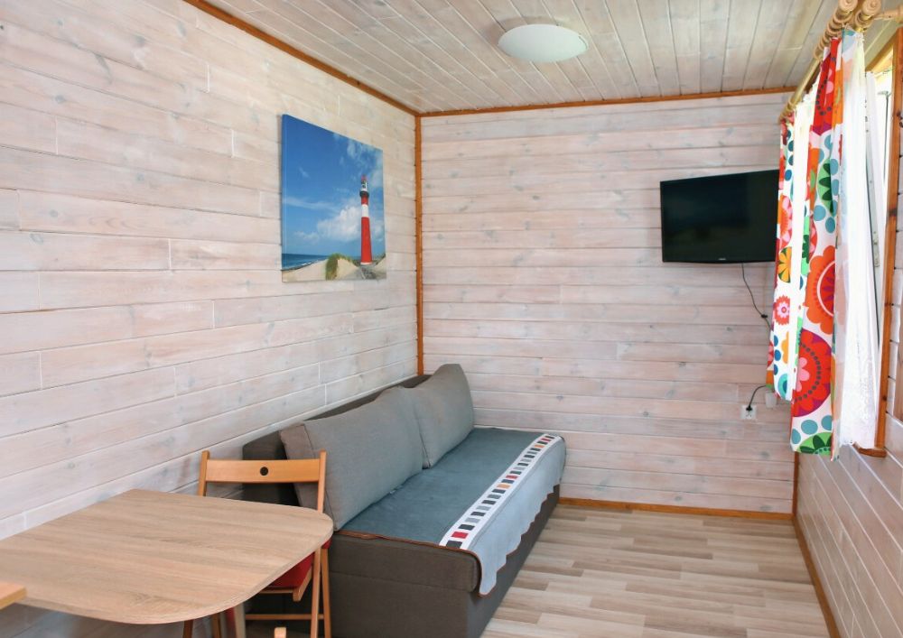 Nasze domki zostały zaprojektowane z myślą o komfortowym wypoczynku i pełnym relaksie. Domek ŁEB-3 składa się z się z przestronnego pokoju dziennego oraz funkcjonalnej łazienki. W każdym domku znajdziesz: